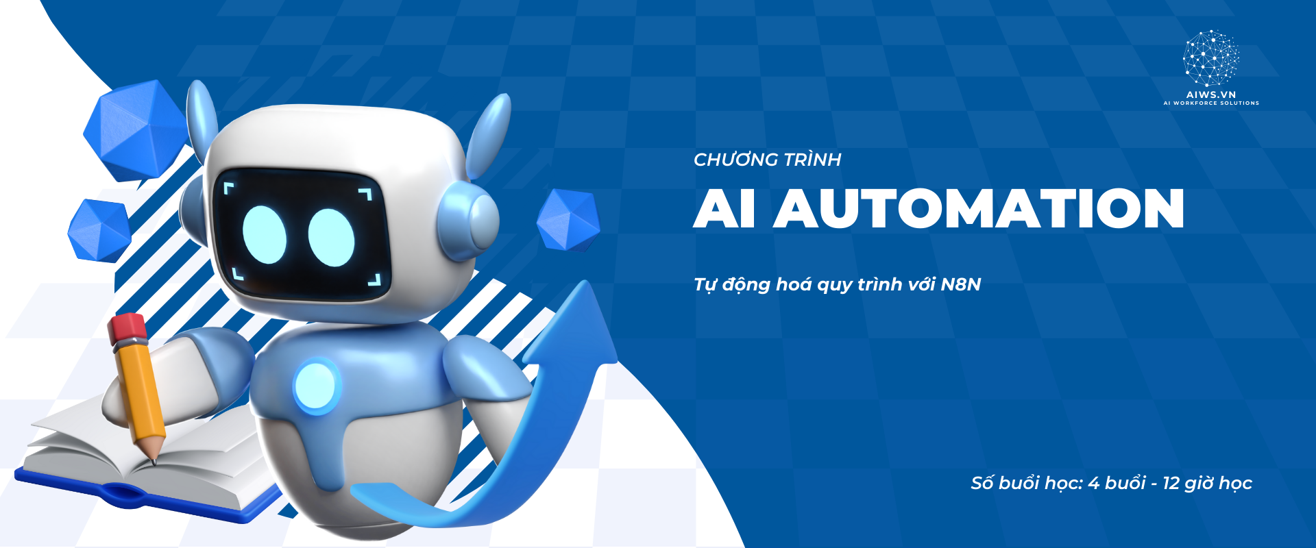 Khóa học AI Automation dành cho người mới bắt đầu, chủ doanh nghiệp, nhân viên marketing và IT. Giúp ứng dụng AI tự động hóa công việc, tối ưu hiệu suất, tạo thu nhập thụ động và dẫn dắt chuyển đổi số mà không cần lo bị AI thay thế.